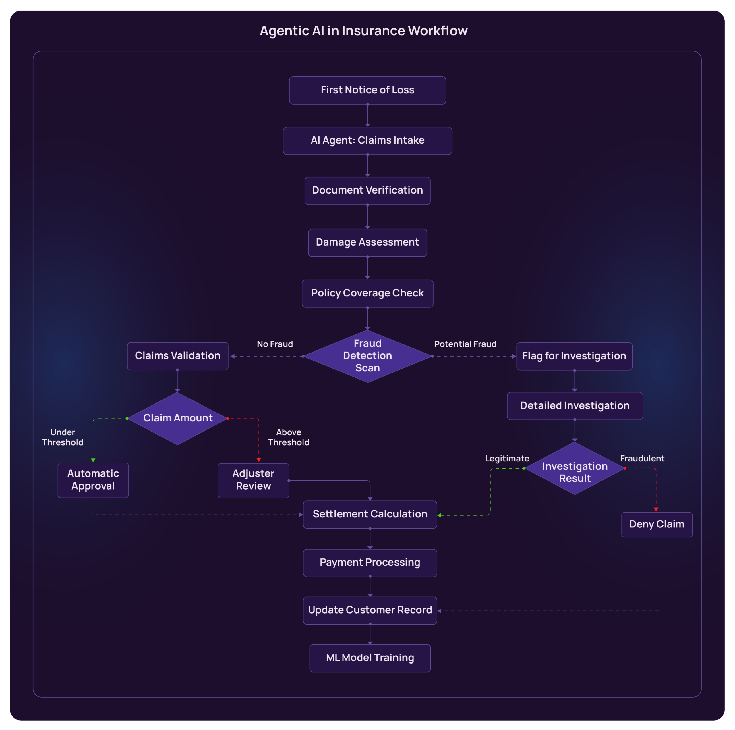 AI insurance agents cut processing time 55-75%. Routine claims that took 7-10 days now close in 24-48 hours. Average resolution dropped from 30 days to 7.5 days. A 75% reduction.