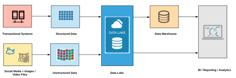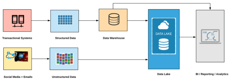 The legacy architecture shows the way Data Warehouses were built and most of the organizations will also consider building Data Marts if they want data to be organized according to their Line of Business. Data Lakes on the other hand were built by ingesting different data types and could store much bigger volumes (Petabytes / Zettabytes) of data.
