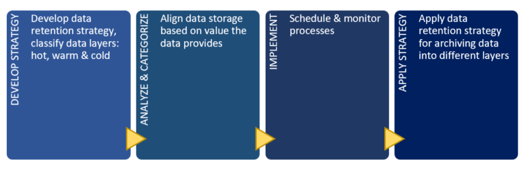 Even though Data Lake means we can store huge volumes of data, does not mean that we will create a data swamp by storing anything and everything in it. DLM ensures there are rules governing what can and cannot be stored. The value of data over longer periods of time tends to decrease and risks associated with storage increases and hence DLM ensures only appropriate and meaningful data is stored by defining policies the organization follows for hot, warm and cold data. E.g., data for last seven years can be considered cold and archived.