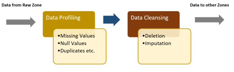 Here the data is checked to understand how good it is or the percentage of bad records that are present by means of ingestion from different source systems. This helps in planning data cleansing and enrichment approaches. Data Quality is essentially a combination of the below: