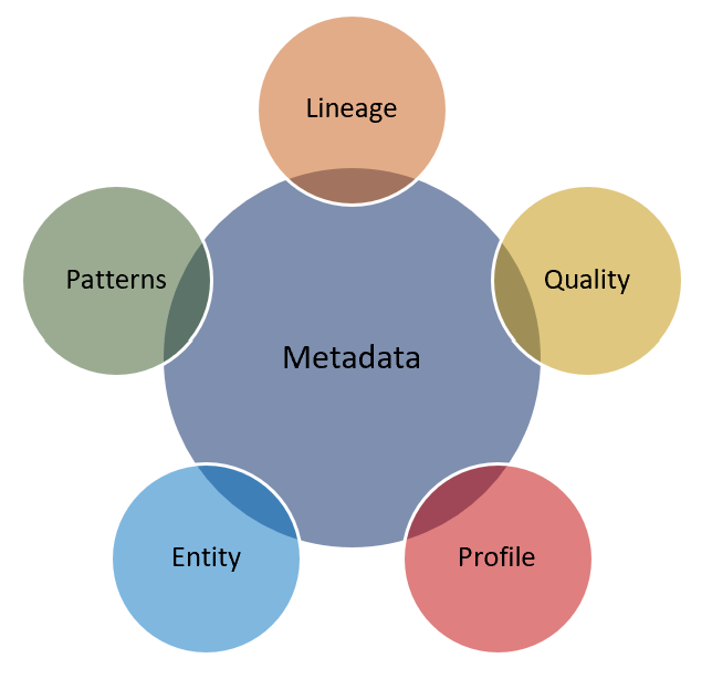 - Operational Metadata:Â captures the lineage, quality, profile and provenance e.g., when the data arrived, where are they located, where did they arrive from, the quality of data etc.