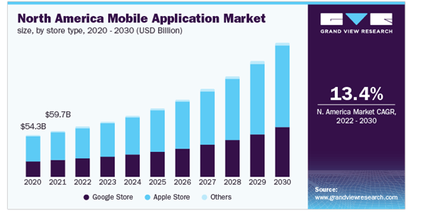 According to Statista, 98% of mobile apps are either built on Android or iOS. Hence, businesses must aim to build apps that satisfy the needs of both user groups. It is projected that the app market will record a CAGR of 6.58% in the period 2022-2026, thus an increase in market volume of up to USD 542.80bn by 2026.