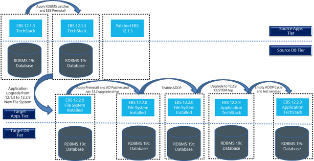 Oracle EBS 12.2 is major release with underlying changes for the file system for Database and Applications. Proven technical upgrade path is as follows: